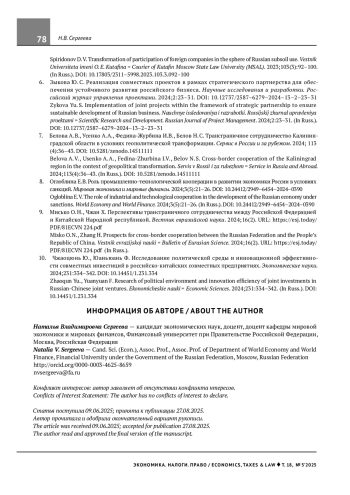 10. Чжаоцюнь Ю., Юаньюань Ф. Исследование политической среды и инновационной эффективности совместных инвестиций в российско-китайских совместных предприятиях. Экономические науки. 2024;231:334-342. DOI: 10.14451/1.231.334