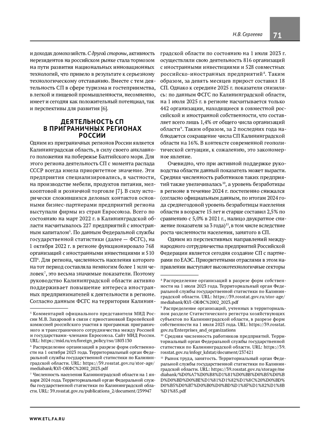 7. Белова А. В., Усенко А. А., Федина-Журбина И.В., Белов Н. С. Трансграничное сотрудничество Калининградской области в условиях геополитической трансформации. Сервис в России и за рубежом. 2024; 113 (4):36-43. DOI: 10.5281/zenodo.14511111 EDN: QWWZWY