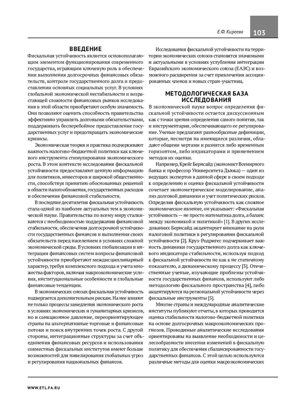 14. Киреева Е. Ф. Фискальная устойчивость в интеграционных союзах. Известия Санкт-Петербургского государственного экономического университета. 2024;149(5):21-26. EDN: DPIKDD