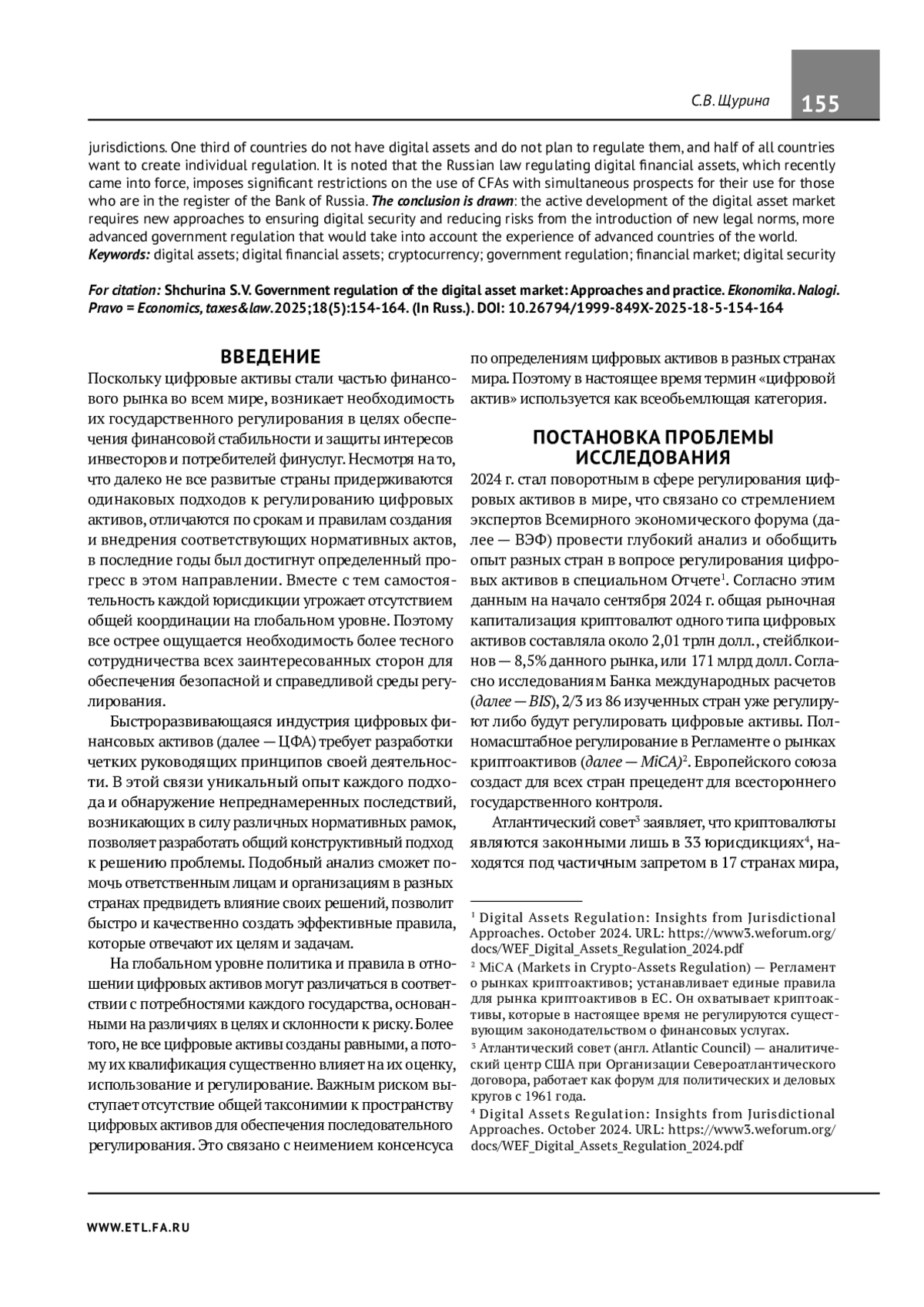 6. Гирич М. Г., Ермохин И. С., Левашенко А. Д. Сравнительный анализ правового регулирования цифровых финансовых активов в России и других странах. Вестник международных организаций. 2022;17(4):176-192. DOI: 10.17323/1996-7845-2022-04-07