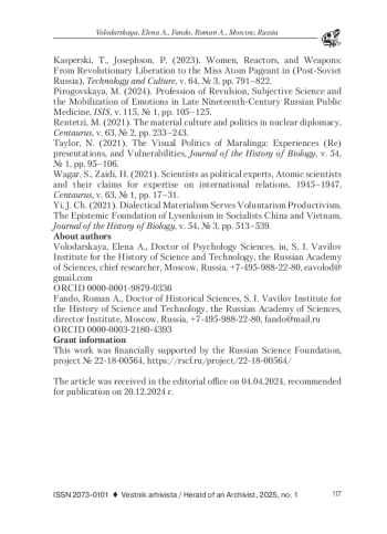 16. Yi, J. Ch. (2021). Dialectical Materialism Serves Voluntarism Productivism, The Epistemic Foundation of Lysenkoism in Socialists China and Vietnam, Journal of the History of Biology, v. 54, № 3, pp. 513-539. EDN: XUQRZY
