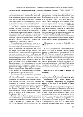 15. Топорков В.В. Национальная политика в российском регионе: опыт Республики Саха (Якутия). Якутск: ГУ НИПК “Сахаполиграфиздат”, 2006. 160 с. Хакназаров С.Х. Коренные малочисленные народы Севера: вопросы устойчивого развития (теоретико-социологический анализ) // Вестник угроведения. 2013. № 4 (15). С. 118-124. EDN: RONUHD