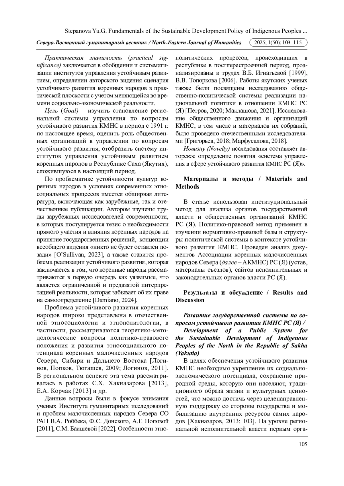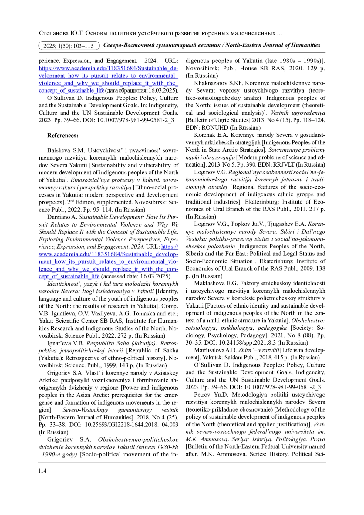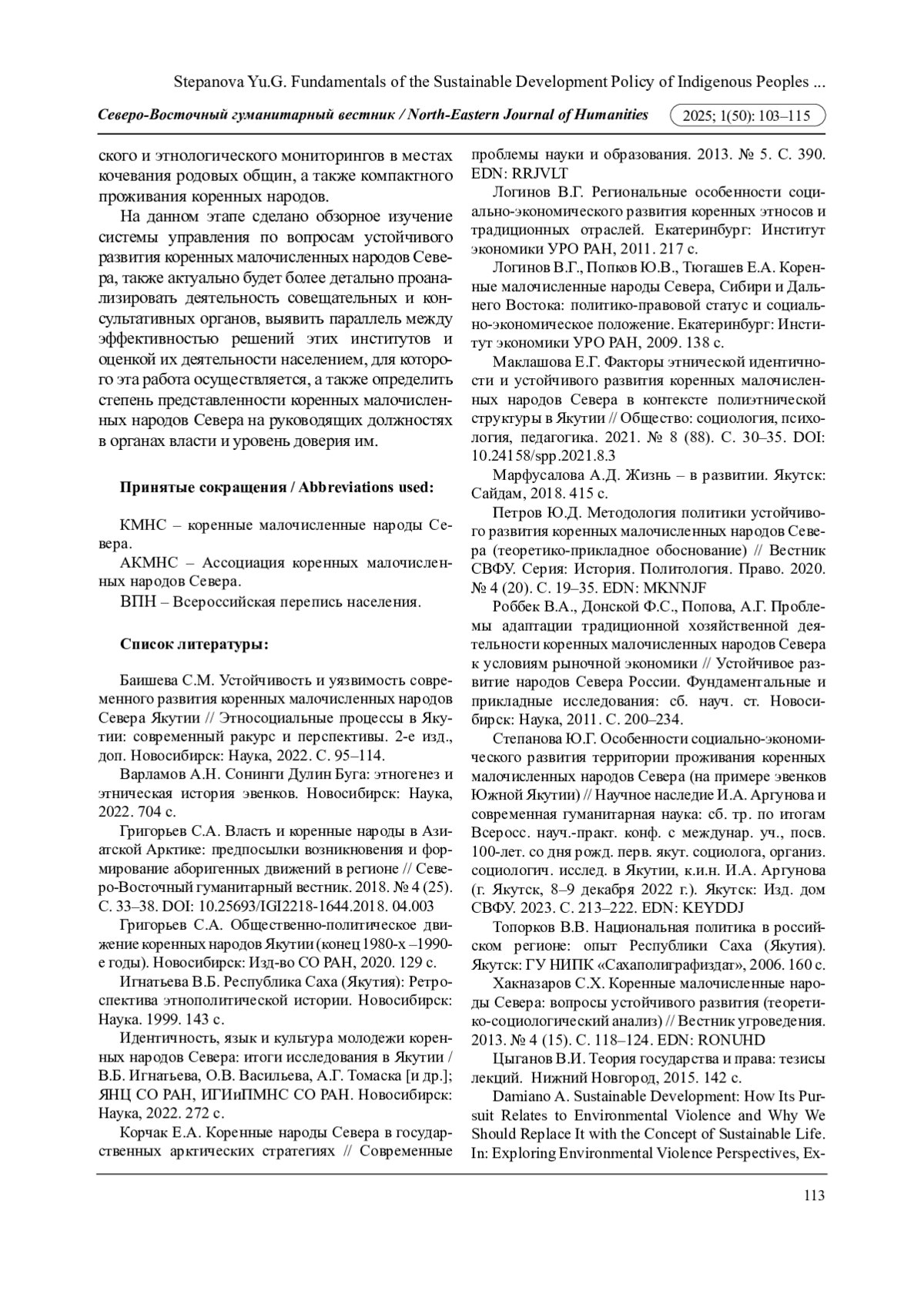 12. Петров Ю.Д. Методология политики устойчивого развития коренных малочисленных народов Севера (теоретико-прикладное обоснование) // Вестник СВФУ. Серия: История. Политология. Право. 2020. № 4 (20). С. 19-35. EDN: MKNNJF