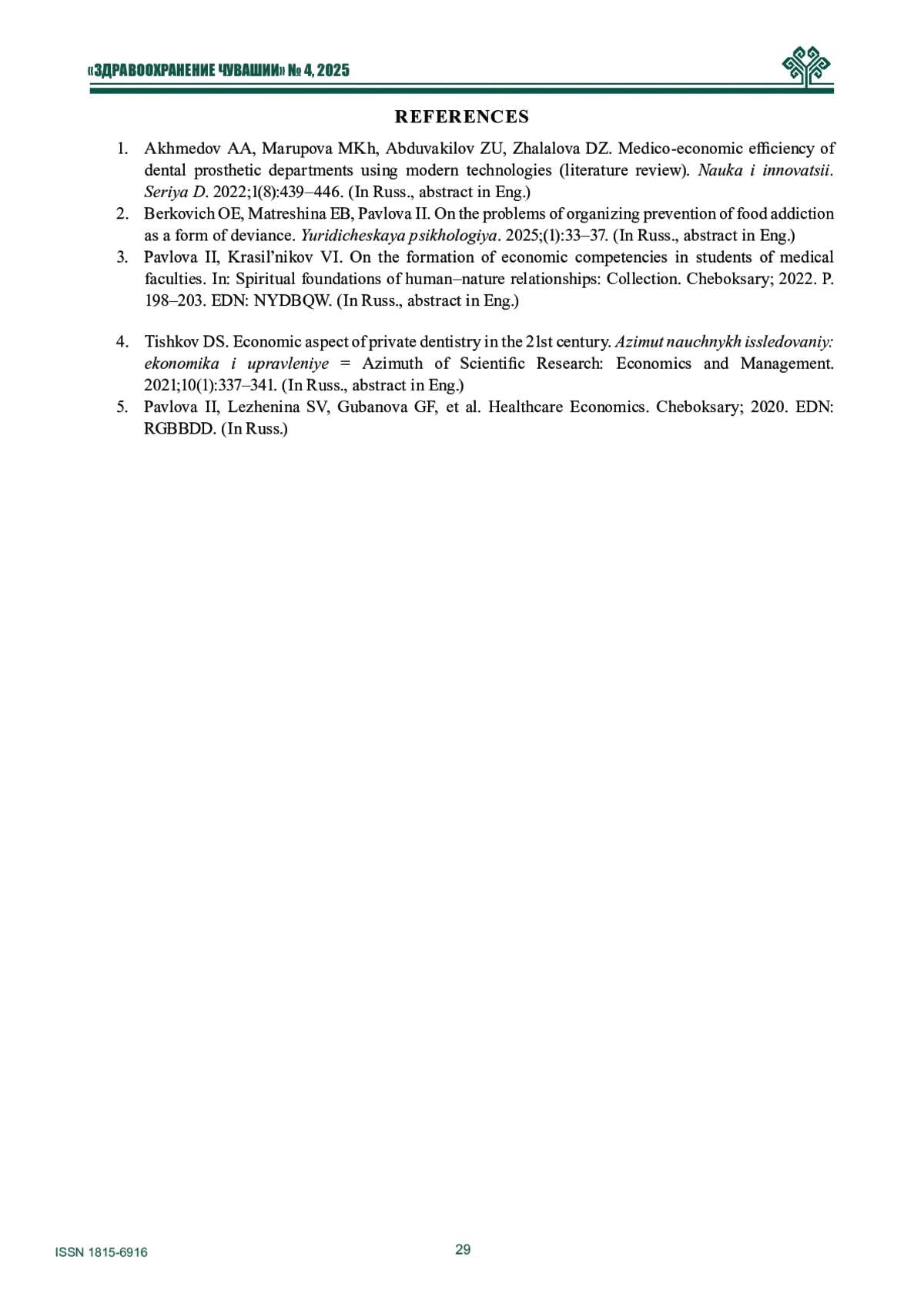 5. Экономика здравоохранения / И.И. Павлова, С.В. Леженина, Г.Ф. Губанова [и др.]. - Чебоксары, 2020.