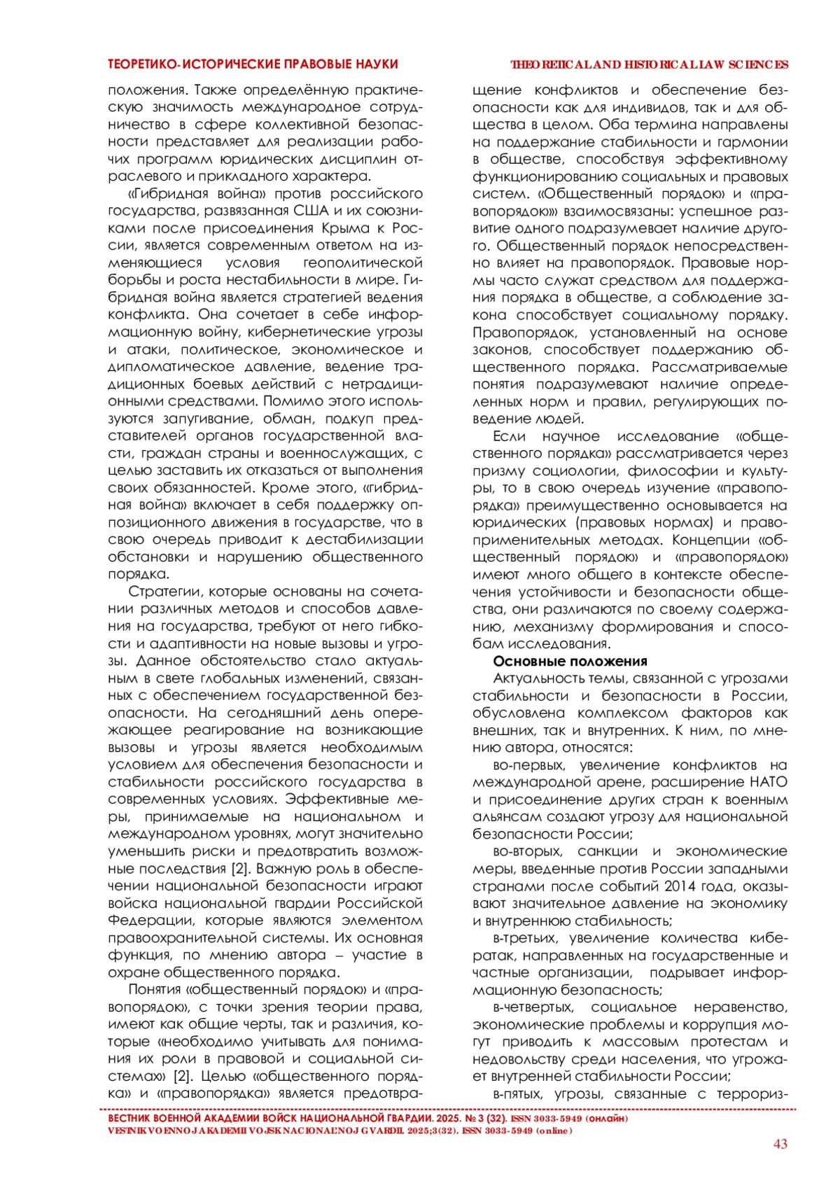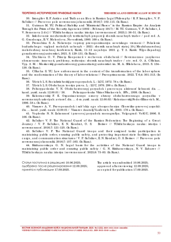 44. Крижановская Г. Н. Правовые основы деятельности войск национальной гвардии по охране общественного порядка и обеспечению общественной безопасности // Юридическая наука: история и современность. 2023. № 6. С. 73-83.