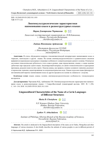 В статье обсуждаются вопросы этнолингвистической интерпретации наименования кошка в тюркских, монгольских и других языках. На основе лингвокультурологического и сравнительного анализов выявляются национально-культурные и языковые особенности концептуализации данного зоонима. Отмечается системная этимологическая дублетность этого слова в разных, даже неродственных, языках, а также наличие дублетных пар в пределах одного языка. Анализируемый материал, по своим этимологическим и структурным признакам, разделен нами на пять групп. Лексема кошка, как правило, помимо основного значения, реализует и переносные значения, акцентированные на антропоцентрическом коде. Однако в русском языке фиксируется метонимический перенос наименования кошка на другие предметы на основе их смежности / сходства.