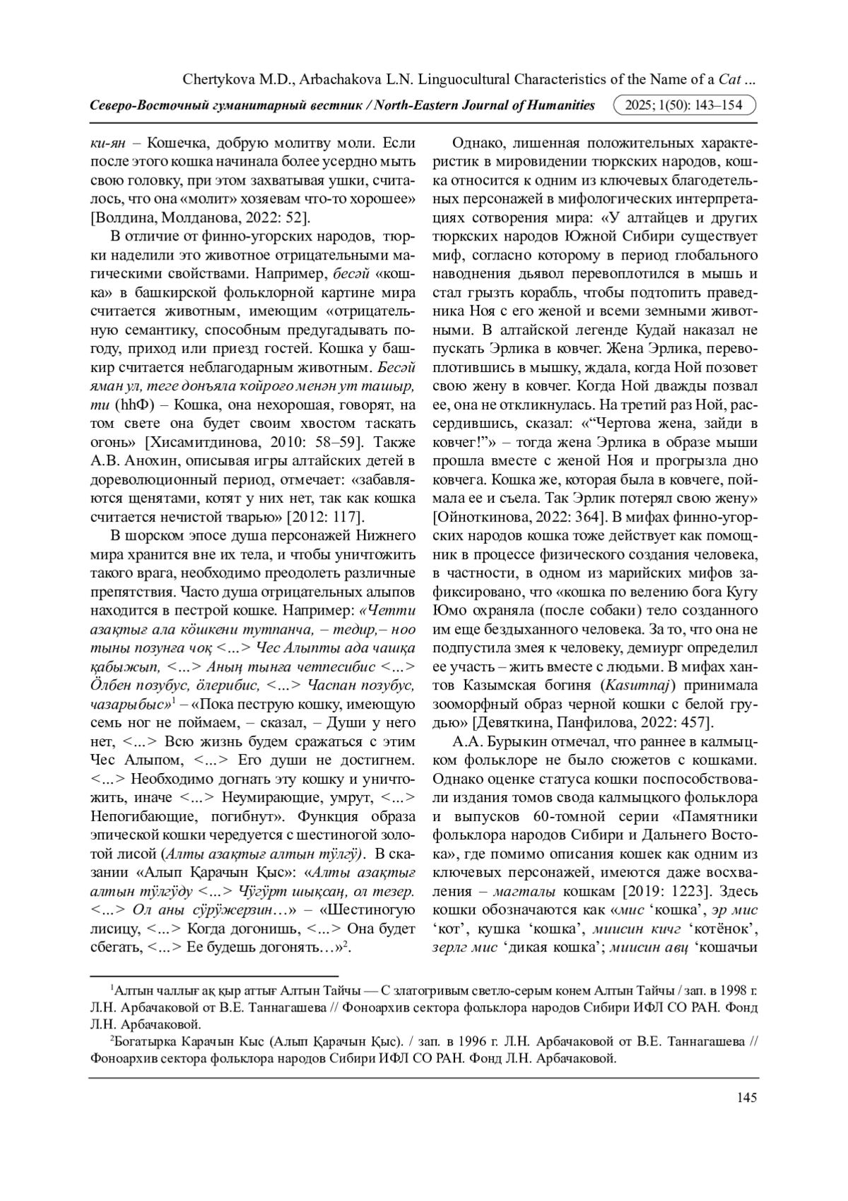29. Бурнаков В.А. Кошка в верованиях и обрядности хакасов (конец XIX - середина XX века) // Проблемы археологии, этнографии, антропологии Сибири и сопредельных территорий. 2019. Т. 25. С. 676-681. DOI: 10.17746/2658-6193.2019.25.676-681 EDN: YEJRVY