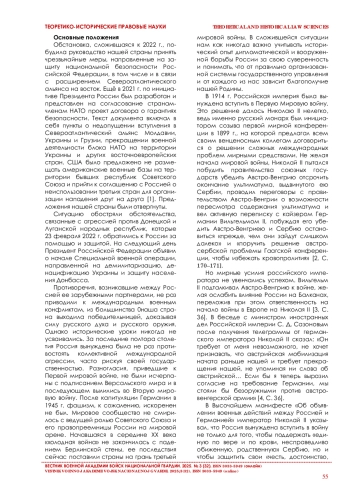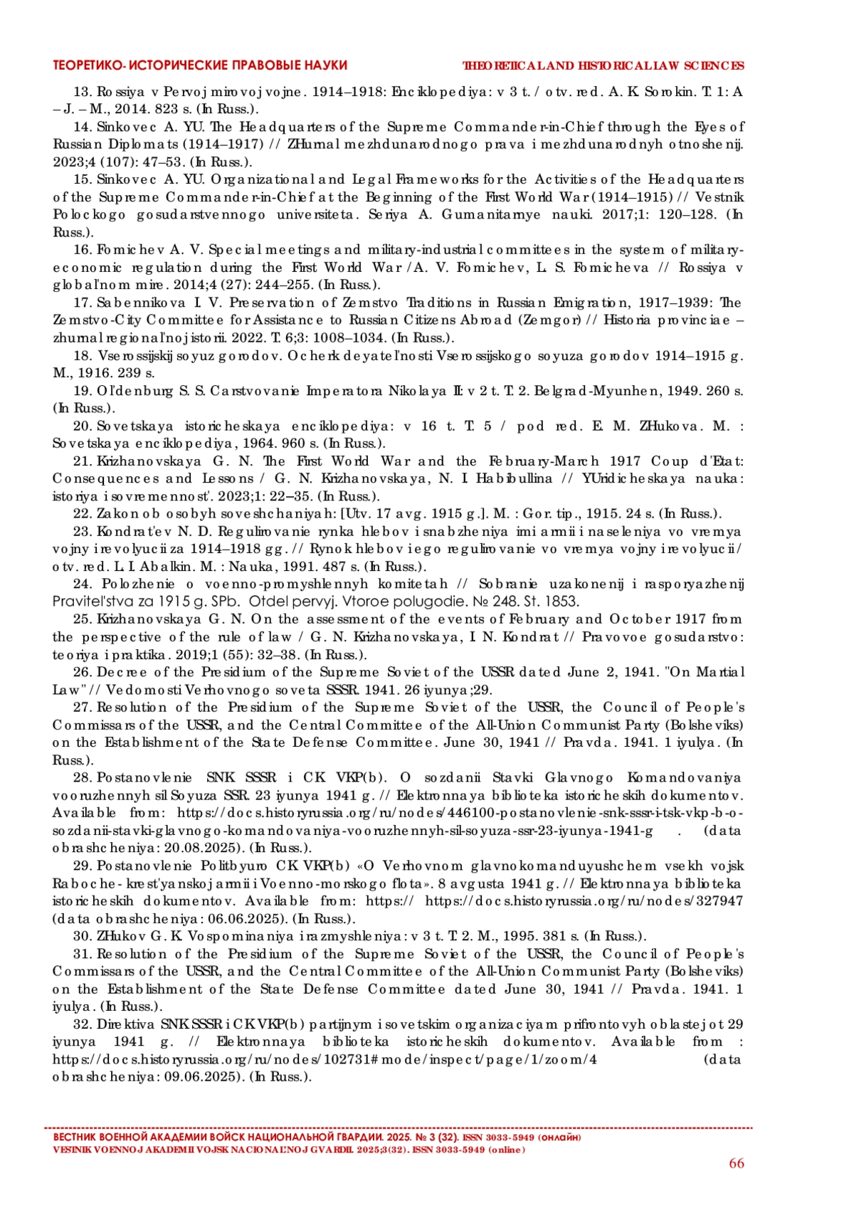 21. Крижановская Г. Н. Первая мировая война и государственный переворот февраля-марта 1917 г.: последствия и уроки / Г. Н. Крижановская, Н. И. Хабибуллина // Юридическая наука: история и современность. 2023. № 1. С. 22-35.
