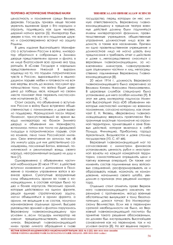 Sinkovec A. YU. Organizational and Legal Frameworks for the Activities of the Headquarters of the Supreme Commander-in-Chief at the Beginning of the First World War (1914-1915) // Vestnik Polockogo gosudarstvennogo universiteta.2017;1:120-128.