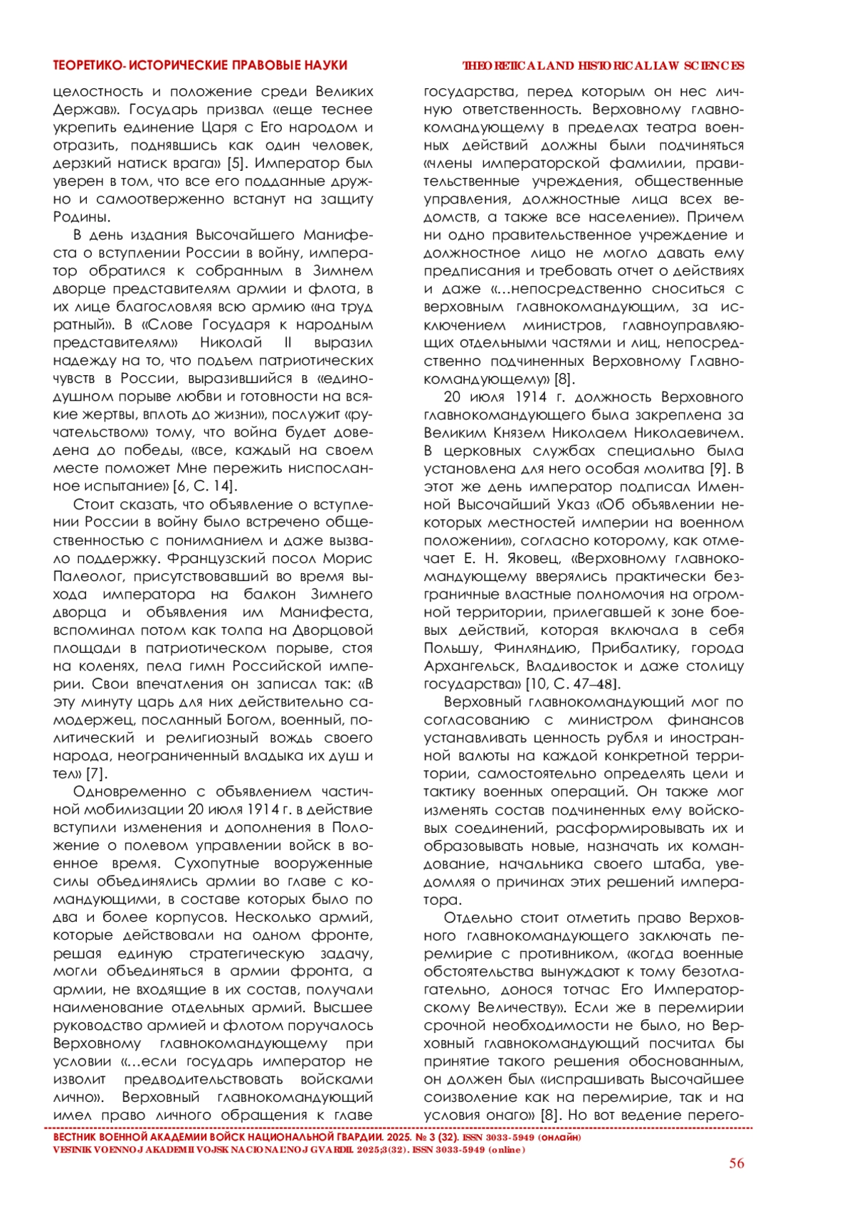 10. Яковец Е. Н. Значение мобилизационных мер начала Первой мировой и Великой Отечественной войн // Военное право. 2022. № 6 (76). С. 45-47.