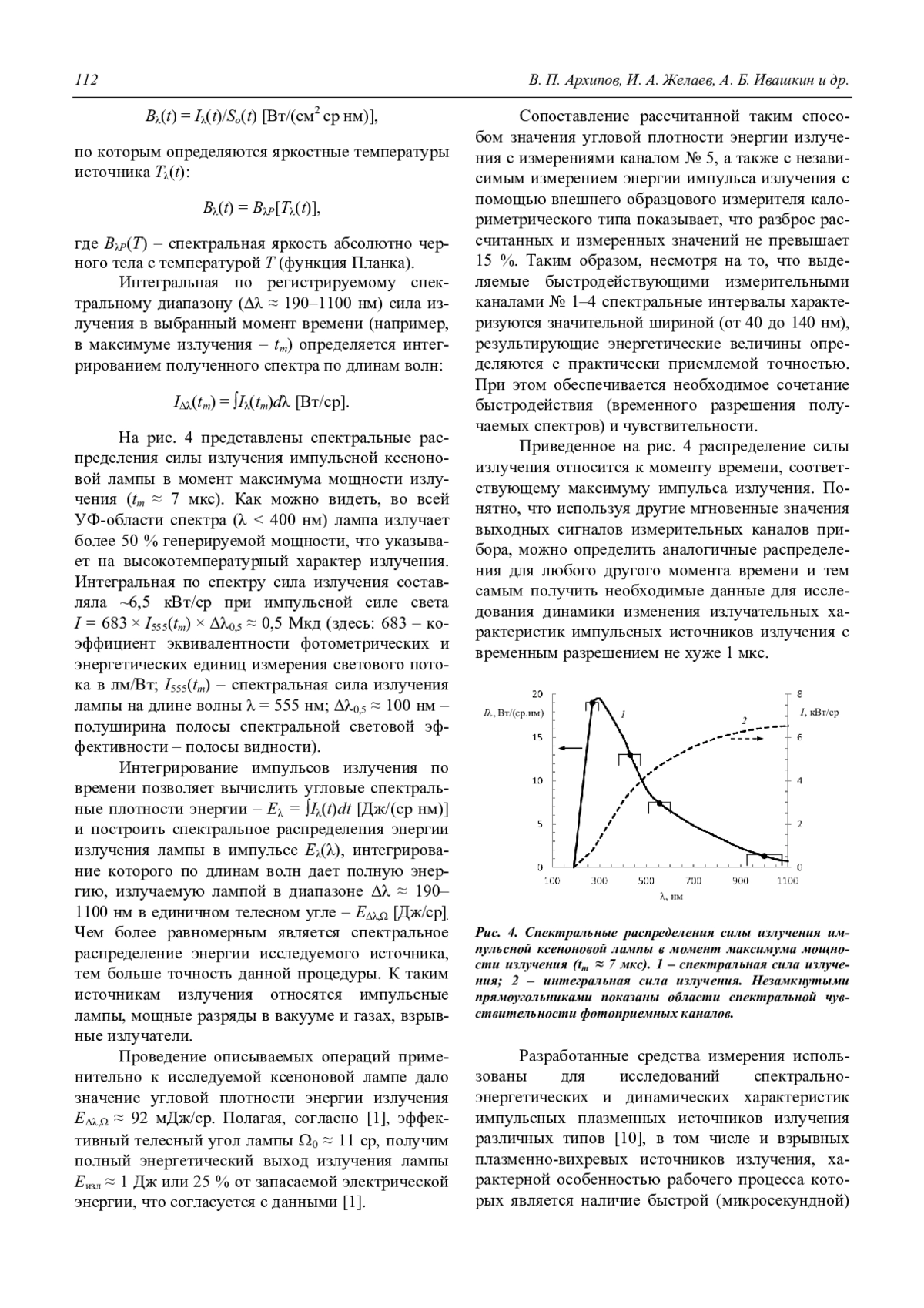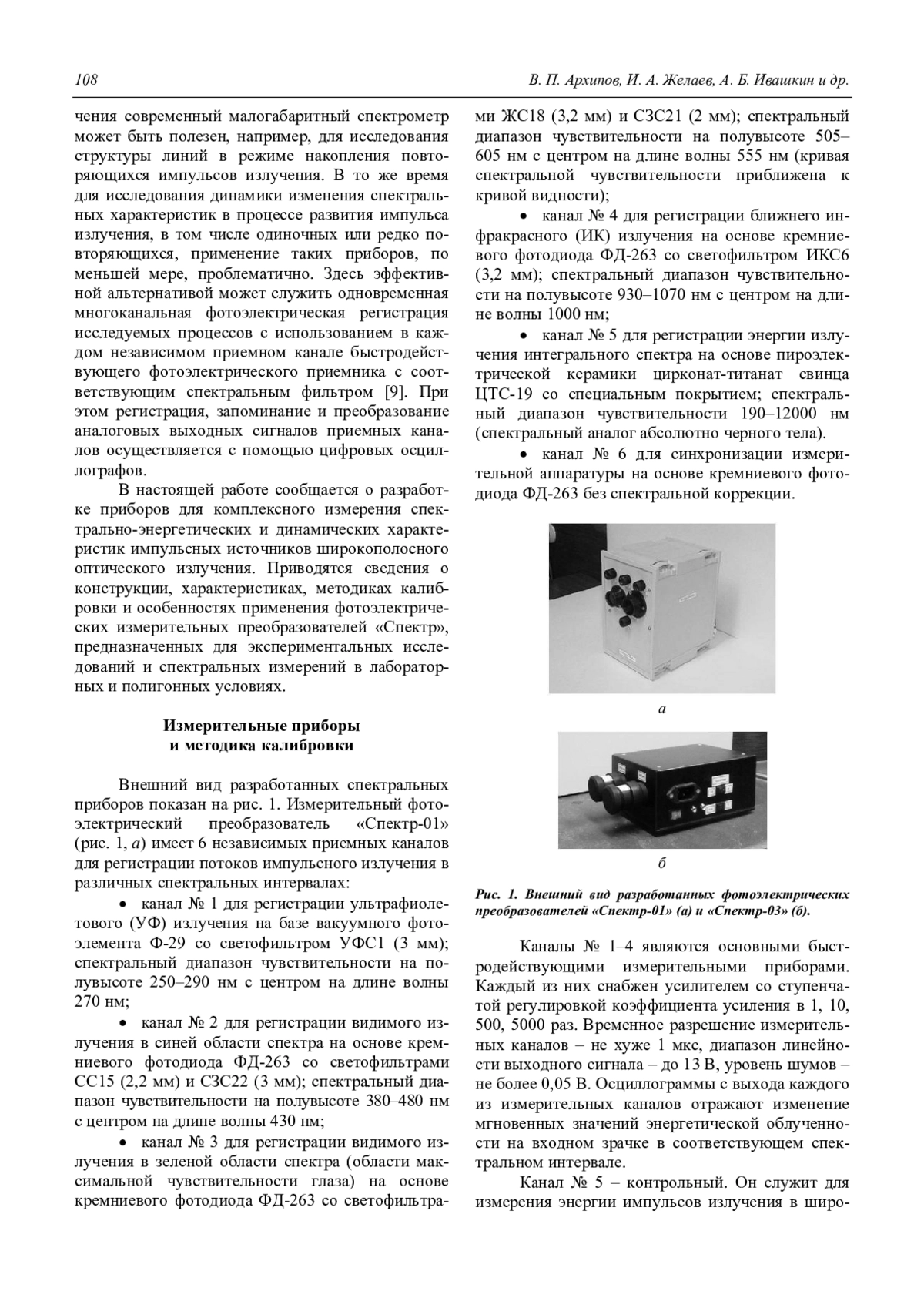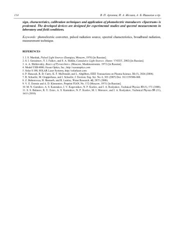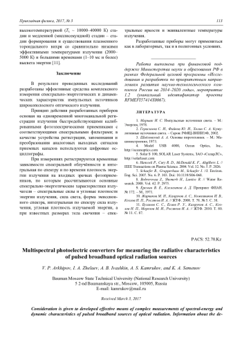 V. P. Arkhipov, I. A. Zhelaev, A. B. Ivashkin, A. S. Kamrukov, and K. A. Semenov Multispectral photoelectric converters for measuring the radiative characteristics of pulsed broadband optical radiation sources 107