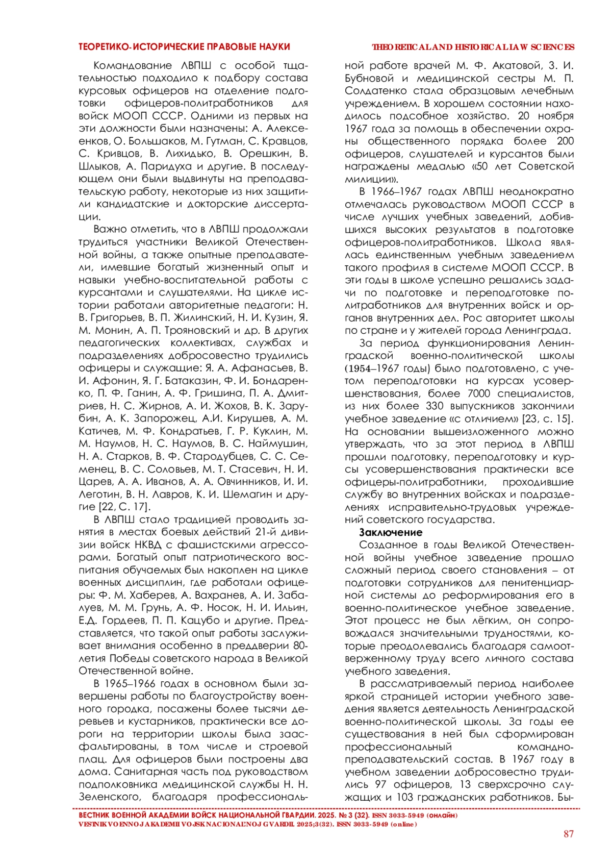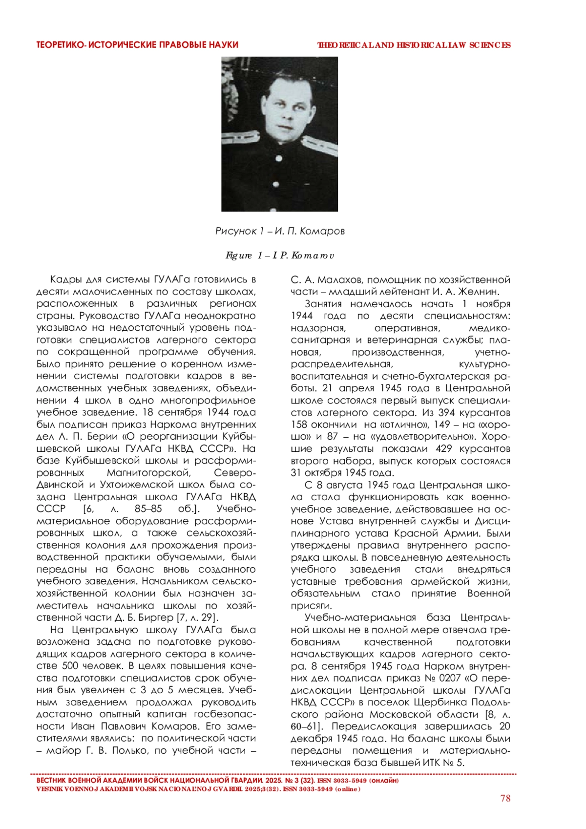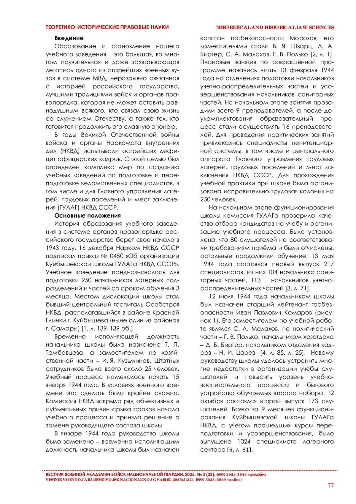 В статье на основе архивных документов и материалов раскрывается механизм образования и основные периоды развития учебного заведения в 1943–1967 годах, которое за этот период прошло пять этапов реорганизации. В работе изложены проблемы становления многопрофильной школы пенитенциарной системы НКВД – МВД СССР и реформирования ее в среднее военно-политическое учебное заведение – Ленинградскую военно-политическую школу (ЛВПШ) МВД СССР.