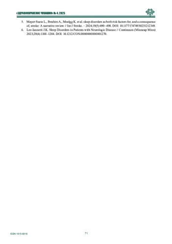 6. Lee-Iannotti J.K. Sleep Disorders in Patients with Neurologic Disease // Continuum (Minneap Minn) 2023;(29):1188-1204.