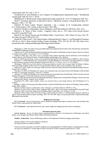 9. Тузовский И. Д. Анти-Хейзинга 2, или к вопросу об универсальном определении игры // Челябинский гуманитарий. 2024. № 2 (67). С. 84-90. EDN: ADYGIT