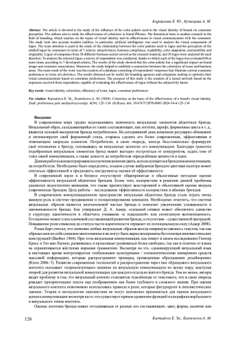 2. Горелкина A. A., Иванченко Т. П. Влияние особенностей логотипа на восприятие человека // Вестник Башкирского государственного педагогического университета им. М. Акмуллы. 2017. № 2 (42). C. 130-137. EDN: ZEFSVL