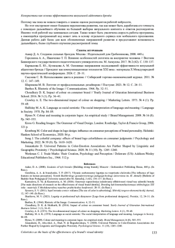 13. Song J. The colorful company: effects of brand logo colorfulness on consumer judgments // Psychology and Marketing. 2022. № 39 (8). Pp. 1610-1620. EDN: QIHHUZ