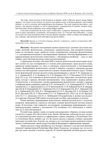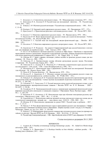 31. Юркина Т. Н. Формирование фонетических навыков при изучении русского языка (на примере китайских студентов) // Вестник ЧГПУ им. И. Я. Яковлева. - 2022. - № 3(116) - С. 239-244.