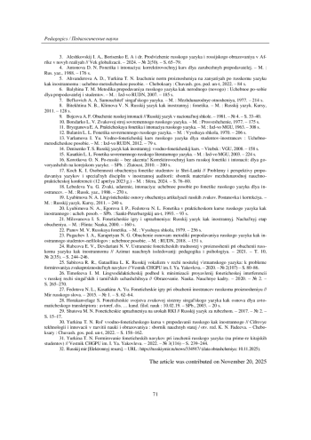 24. Рубцова Е. В., Девдариани Н. В. Устранение фонетических трудностей в произношении при обучении русскому языку как иностранному // Азимут научных исследований: педагогика и психология. - 2021. - Т. 10, № 2(35). - С. 244-246.