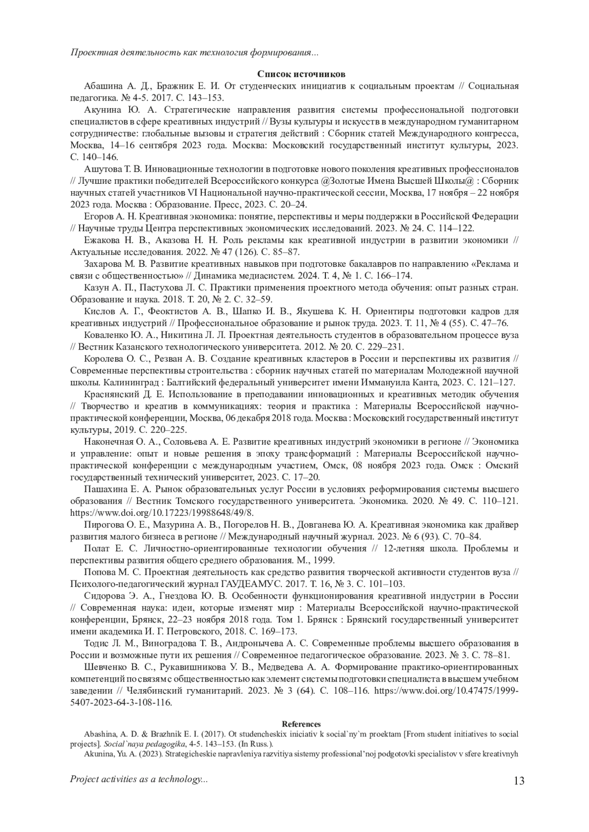 1. Абашина А. Д., Бражник Е. И. От студенческих инициатив к социальным проектам // Социальная педагогика. № 4-5. 2017. С. 143-153. EDN: VVCWDR