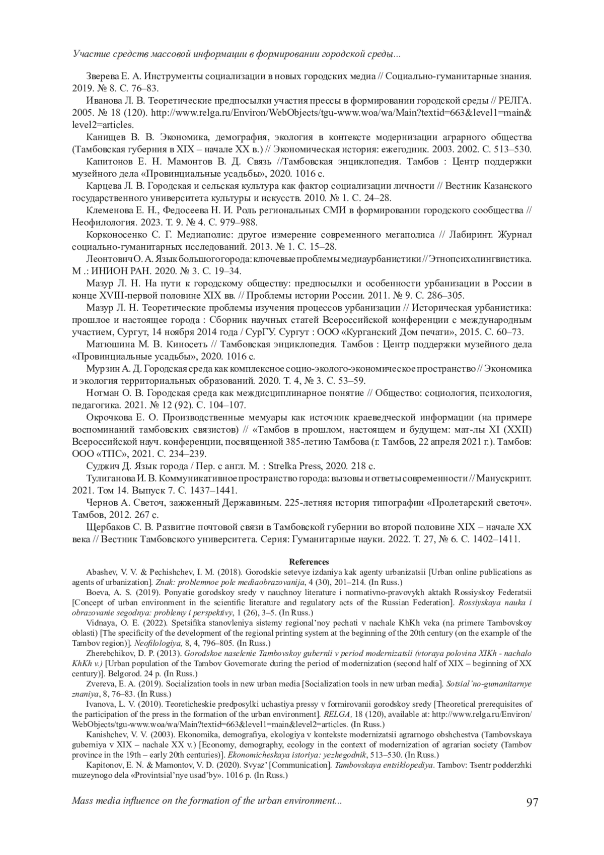 1. Абашев В. В., Печищев И. М. Городские сетевые издания как агенты урбанизации// Знак: проблемное поле медиаобразования. 2019. № 4 (30). С. 201-214.
