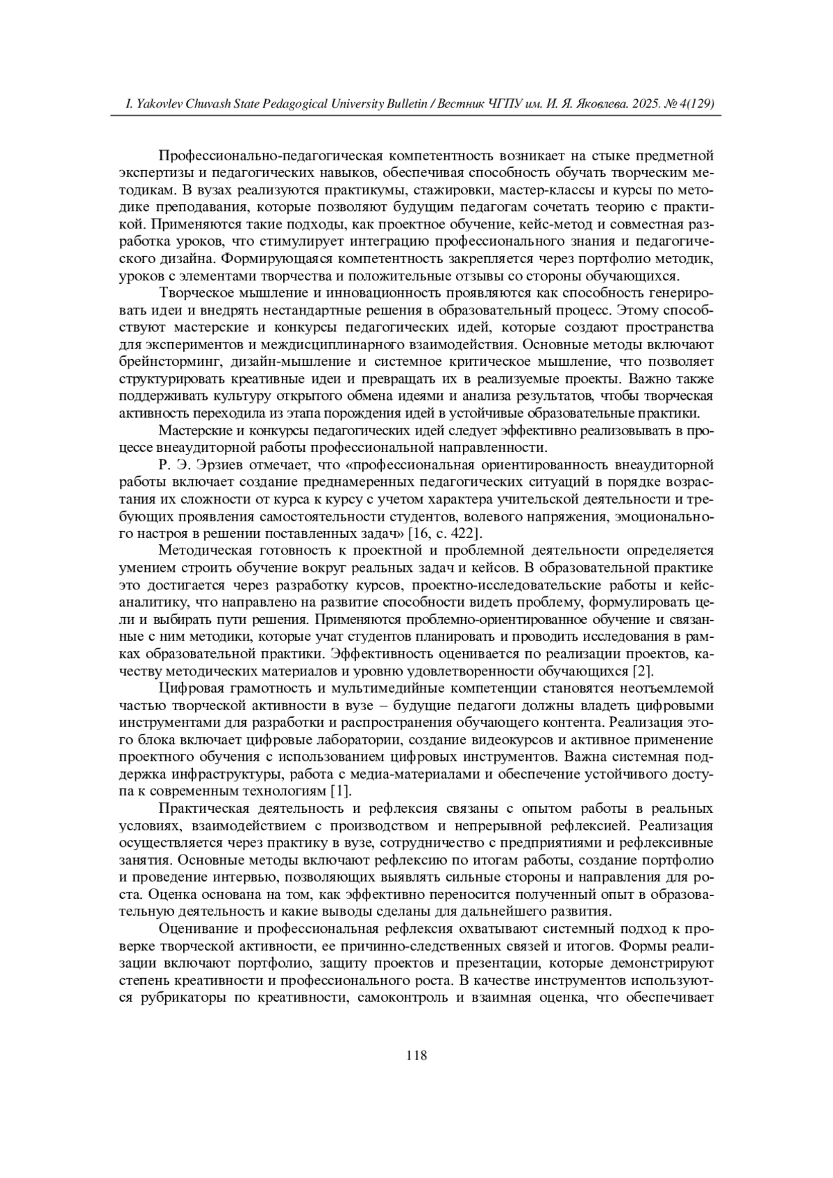 16. Эрзиев Р. Э. Внеаудиторная работа профессиональной направленности как средство формирования у будущих педагогов умений самостоятельной практической деятельности // Проблемы современного педагогического образования. - 2025. - № 86-1. - C. 422-425.