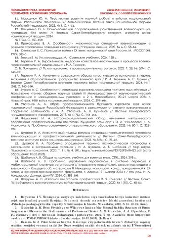 17. Терехин Р. А. Изменение содержания образа мира курсантов-психологов в период вхождения в образовательное пространство военного вуза // Вестник Санкт-Петербургского военного института войск национальной гвардии. 2024. № 1 (26). С. 160-166.