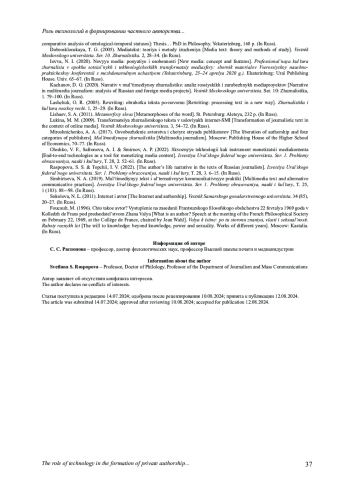 16. Мирошниченко А. А. Освобождение авторства и четыре отряда публикаторов // Мультимедийная журналистика. Москва: Издательский дом Высшей школы экономики, 2017. С. 70-77.