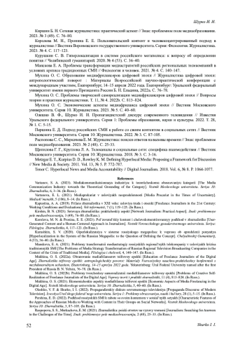 12. Першина Е. Д. Подход российских СМИ к работе со своим контентом в социальных сетях // Вестник Московского университета. Серия 10: Журналистика. 2022. № 3. С. 87-105. EDN: KWEYLM