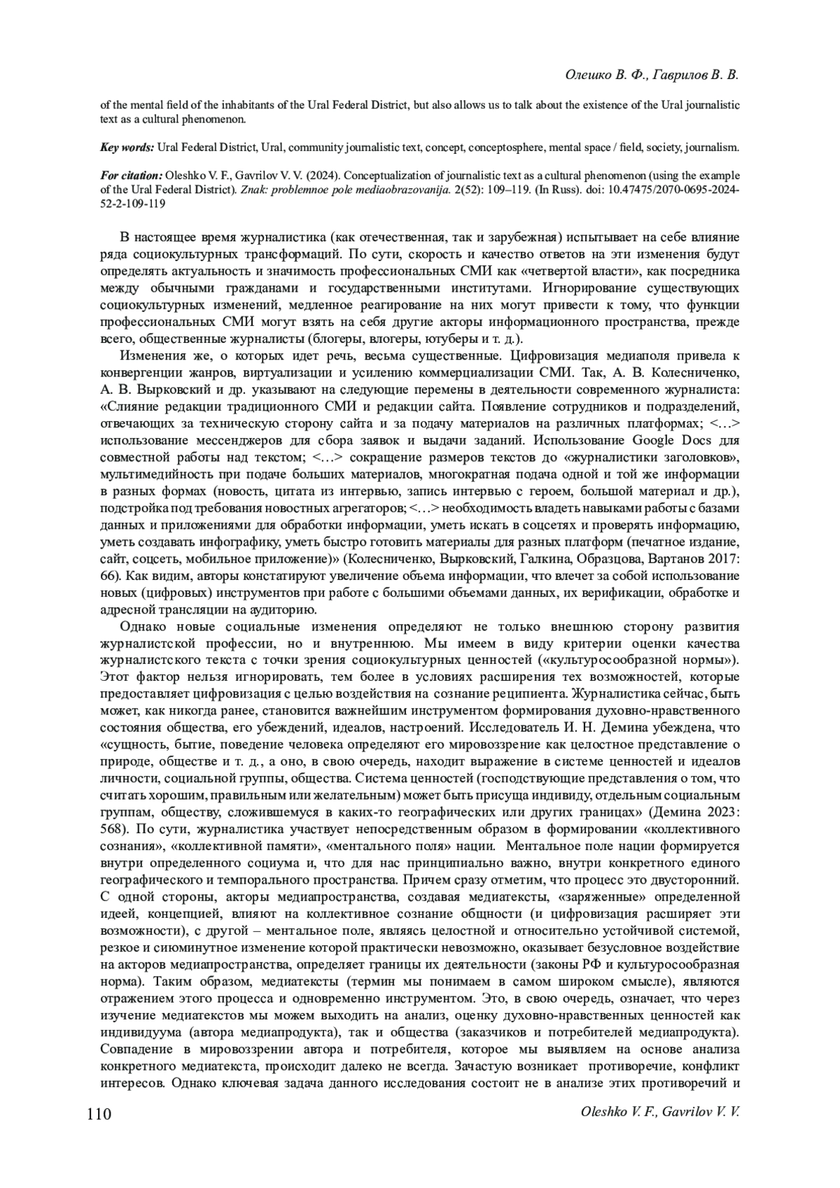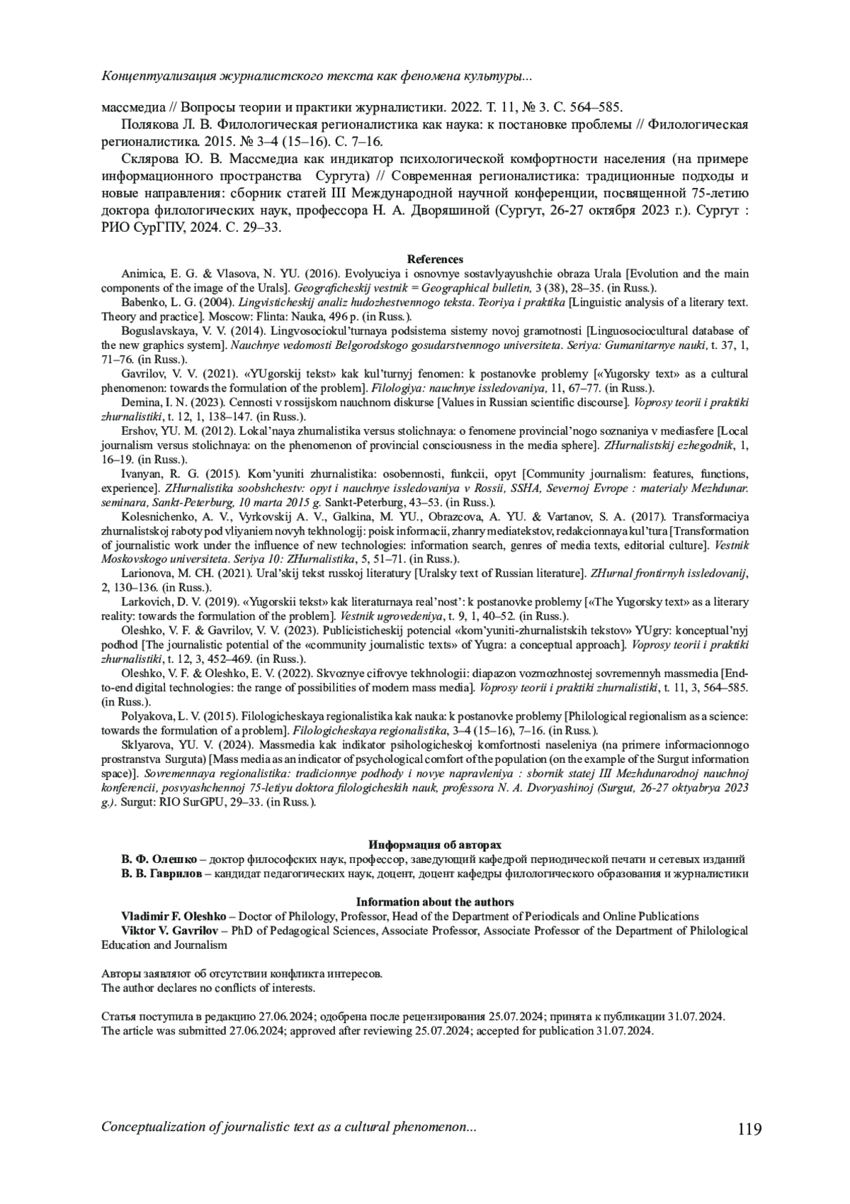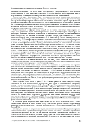11. Олешко В. Ф., Гаврилов В. В. Публицистический потенциал “комьюнити-журналистских текстов” Югры: концептуальный подход // Вопросы теории и практики журналистики. 2023. Т. 12, № 3. С. 452-469. EDN: QZNRJE