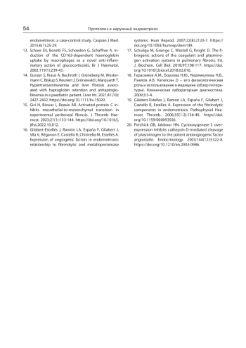 19. Gilabert-Estelles J, Ramon LA, España F, Gilabert J, Castello R, Estelles A. Expression of the fibrinolytic components in endometriosis. Pathophysiol Haemost Thromb. 2006;35(1-2):136-40. DOI: 10.1159/000093556