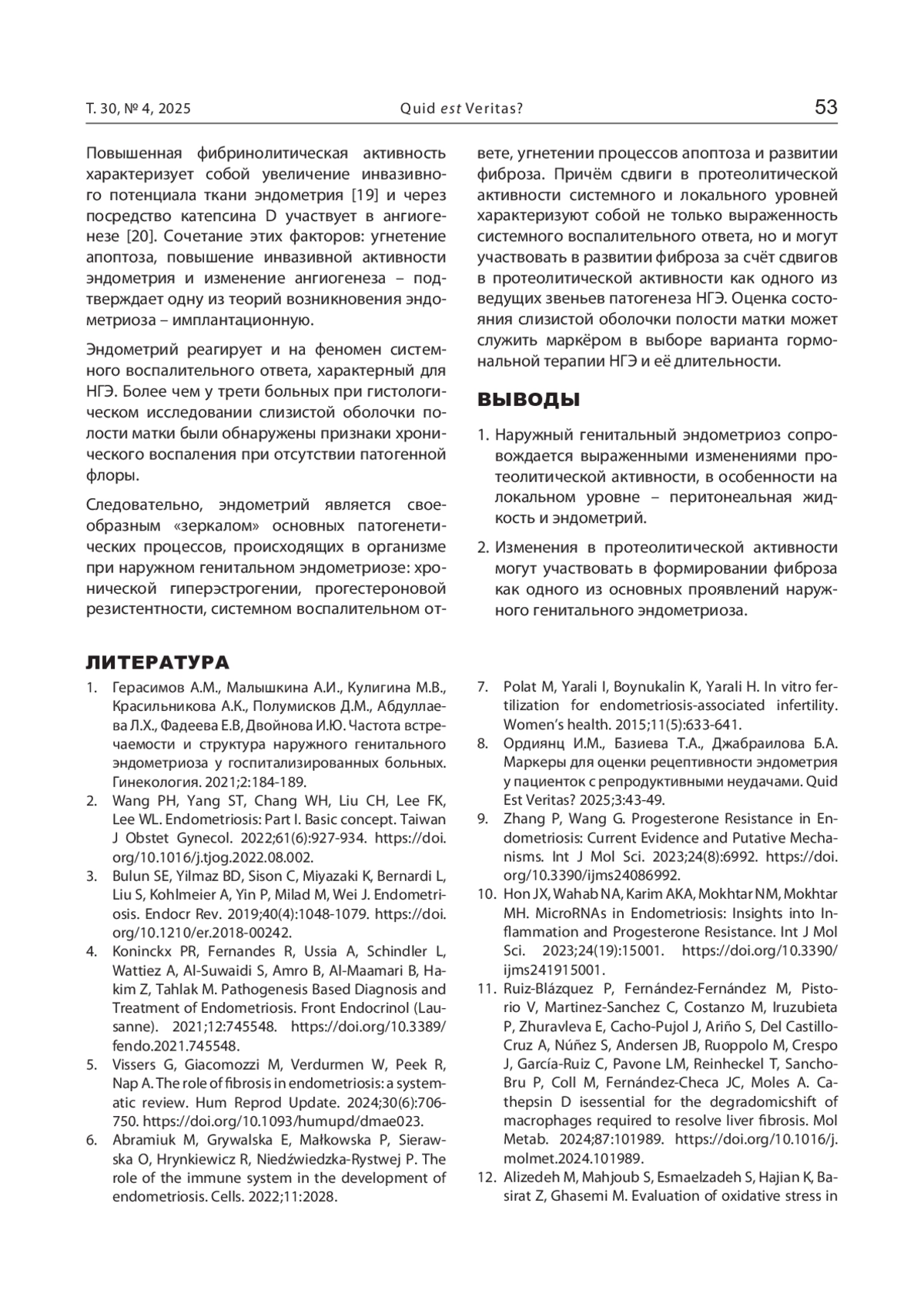 8. Ордиянц И.М., Базиева Т.А., Джабраилова Б.А. Маркеры для оценки рецептивности эндометрия у пациенток с репродуктивными неудачами. Quid Est Veritas? 2025;3:43-49.