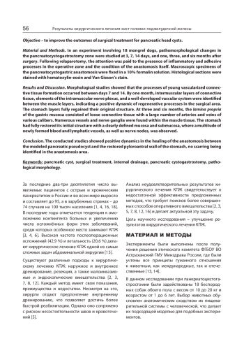 Заключение. Проведенные исследования показали положительную динамику заживления соустья между моделированной кистой поджелудочной железы и восстановления стенки пилороантрального отдела желудка. Рубцевания в зоне анастомоза нет.