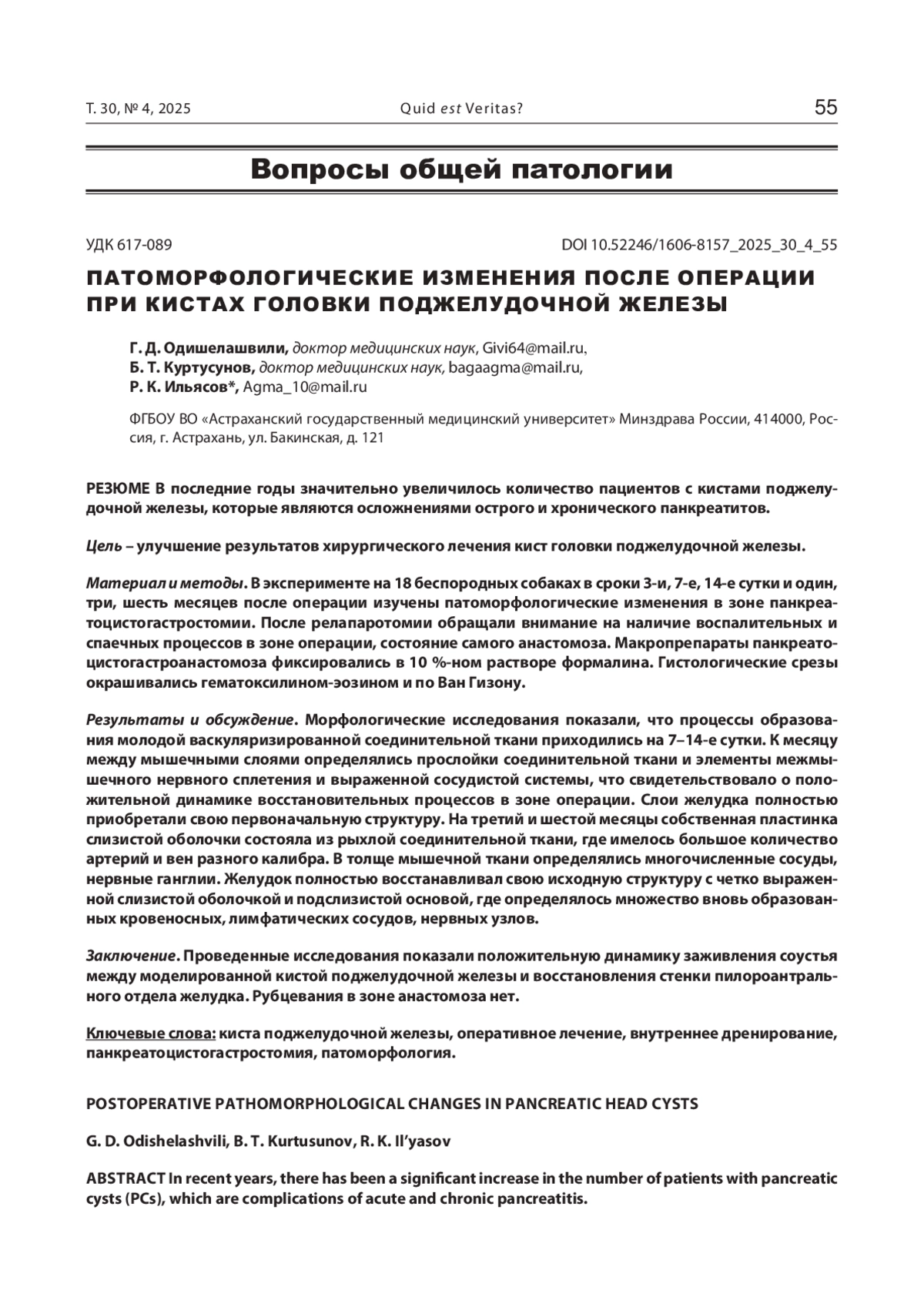 7. Одишелашвили Г.Д., Ильясов Р.К., Пахнов Д.В., Куртусунов Б.Т., Способ панкреатоцистогастростомии в профилактике послеоперационных осложнений при кистах головки поджелудочной железы. Медицинский вестник Северного Кавказа. 2021;16(4):405-407. DOI: 10.14300/mnnc.2021.16096