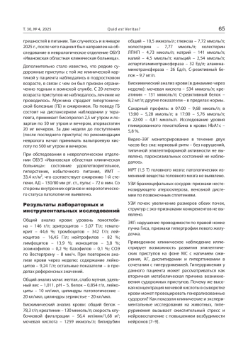 Единый этиопатогенез и высокая распространенность сочетания андроидного ожирения, инсулинорезистентности, атерогенной дислипидемии и артериальной гипертензии стала основой к объединению этих состояний в единое понятие – метаболический синдром (МС). Нередко одним из ведущих компонентов МС является инсулинорезистентность различной степени выраженности – от гипергликемии натощак до сахарного диабета 2 типа. С течением времени среди ассоциированных с МС состояний научным интересом специалистов стала оценка нарушений метаболизма пуринов. Гиперурикемия сегодня рассматривается в качестве индикатора гормонально-метаболических сдвигов [1, 2] и фактора риска развития сердечно-сосудистой патологии [3, 4]. Отмечено, что высокий уровень мочевой кислоты в сыворотке крови может явиться причиной возникновения эпилептических приступов [5] и способствовать развитию фармакорезистентной эпилепсии [6]. Однако связь между повышенным уровнем мочевой кислоты в сыворотке крови и приступами эпилепсии остается неопределенной. Тем не менее накопление наблюдений в практике может внести ясность в понимание этой проблемы. Представляем собственное клиническое наблюдение пациента.