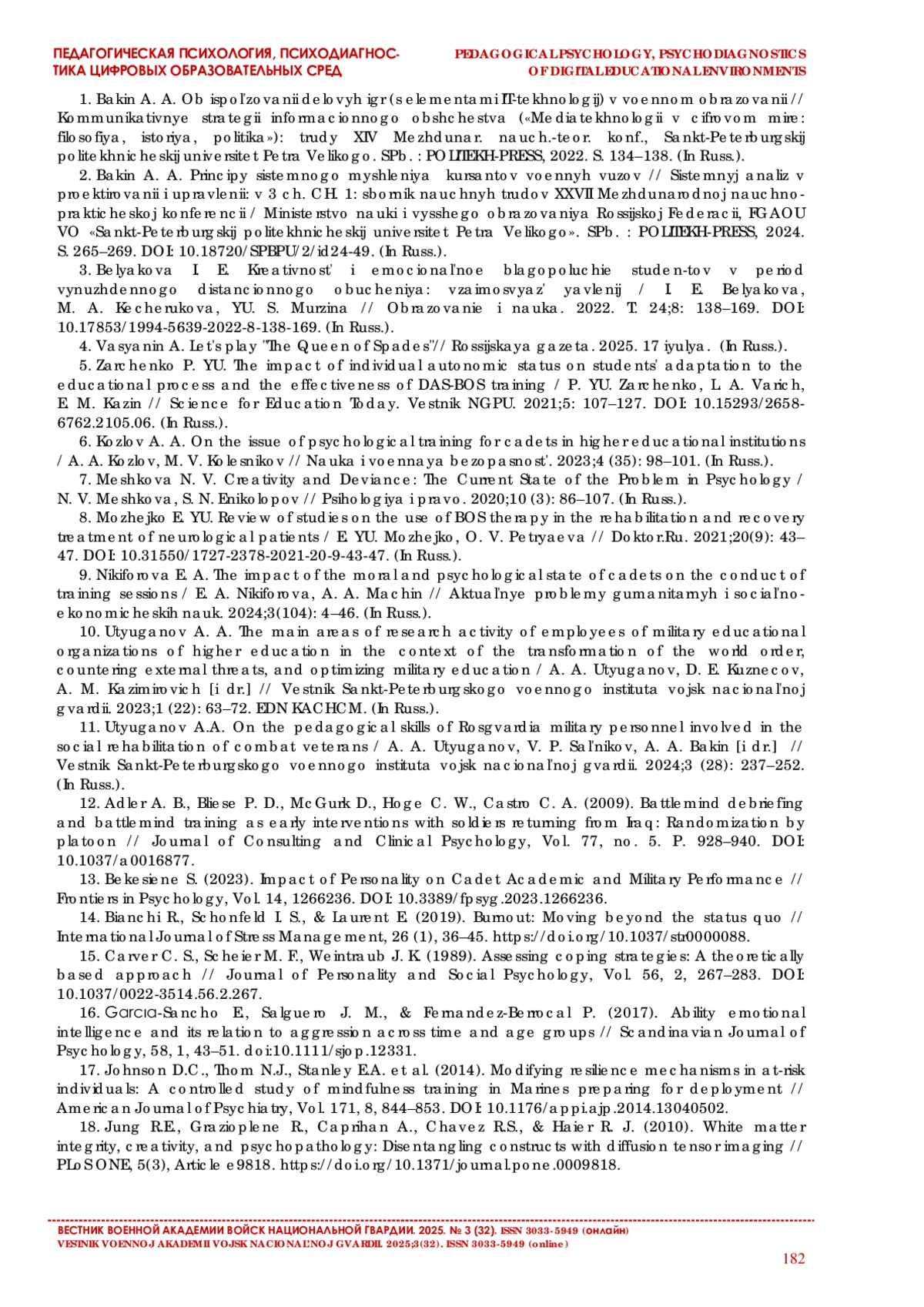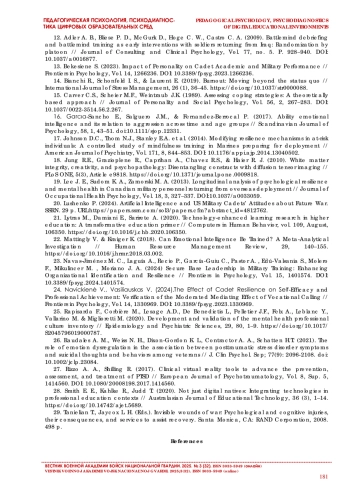 13. Bekesiene S. (2023). Impact of Personality on Cadet Academic and Military Performance // Frontiers in Psychology, Vol. 14, 1266236. DOI: 10.3389/fpsyg.2023.1266236