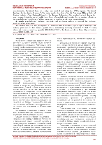 Karayani A. G. Psihologicheskaya podgotovka voennosluzhashchih (sotrudnikov) k sluzhebno-boevoj deyatel’nosti // Aktual’nye problemy psihologii pravoohranitel’noj deyatel’nosti. SPb., 2023. S. 368-373.