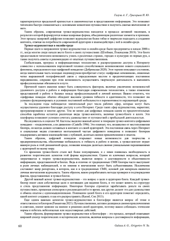 5. Кутепова А. И. Трансформация трэвел-журналистики в блогосфере (на примере трэвел-блога Ильи Варламова) // МНСК-2019. Журналистика. 2019. С. 75-76. EDN: IUVYWK