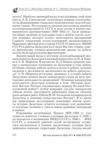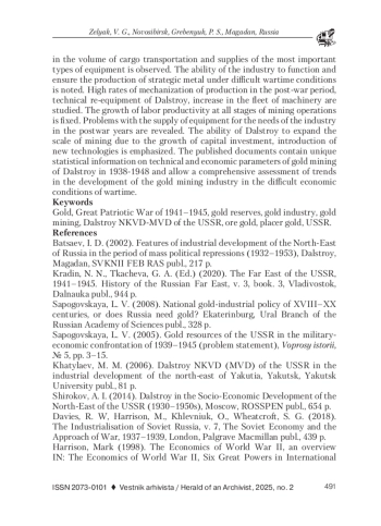 Введение. История развития золотой промышленности в СССР накануне и в период Второй мировой войны 1939–1945 гг. – малоисследованное направление в отечественной исторической науке. Связано это с вполне объяснимой проблемой полной закрытости для исследователей информации о пополнении в стране валютных ресурсов для проведения индустриализации.