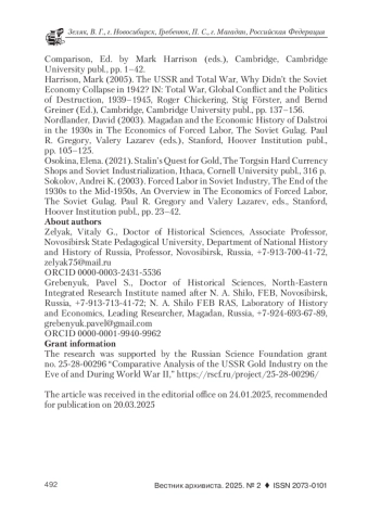 12. Sokolov, Andrei K. 2003. Forced Labor in Soviet Industry: The End of the 1930s to the Mid-1950s: An Overview in The Economics of Forced Labor: The Soviet Gulag. Paul R. Gregory and Valery Lazarev, eds. Stanford: Hoover Institution Press, 2003, pp. 23-42.