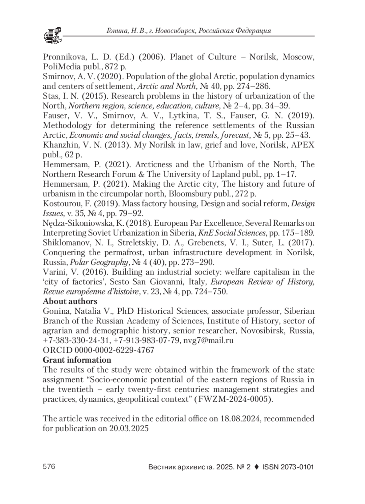 9. Назарова, Л. Г., Полуэктов, В. Е. Опыт проектирования и строительства городов Крайнего Севера (на примере Норильска). Москва: Стройиздат, 1972. 176 с.