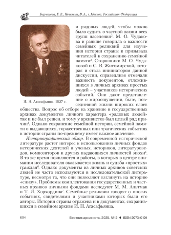 8. Минеев, А. И. Личный архив как источник советской эпохи // Центр и периферия. 2023. Т. 18. № 4. С. 32-39. EDN: IMSYQM