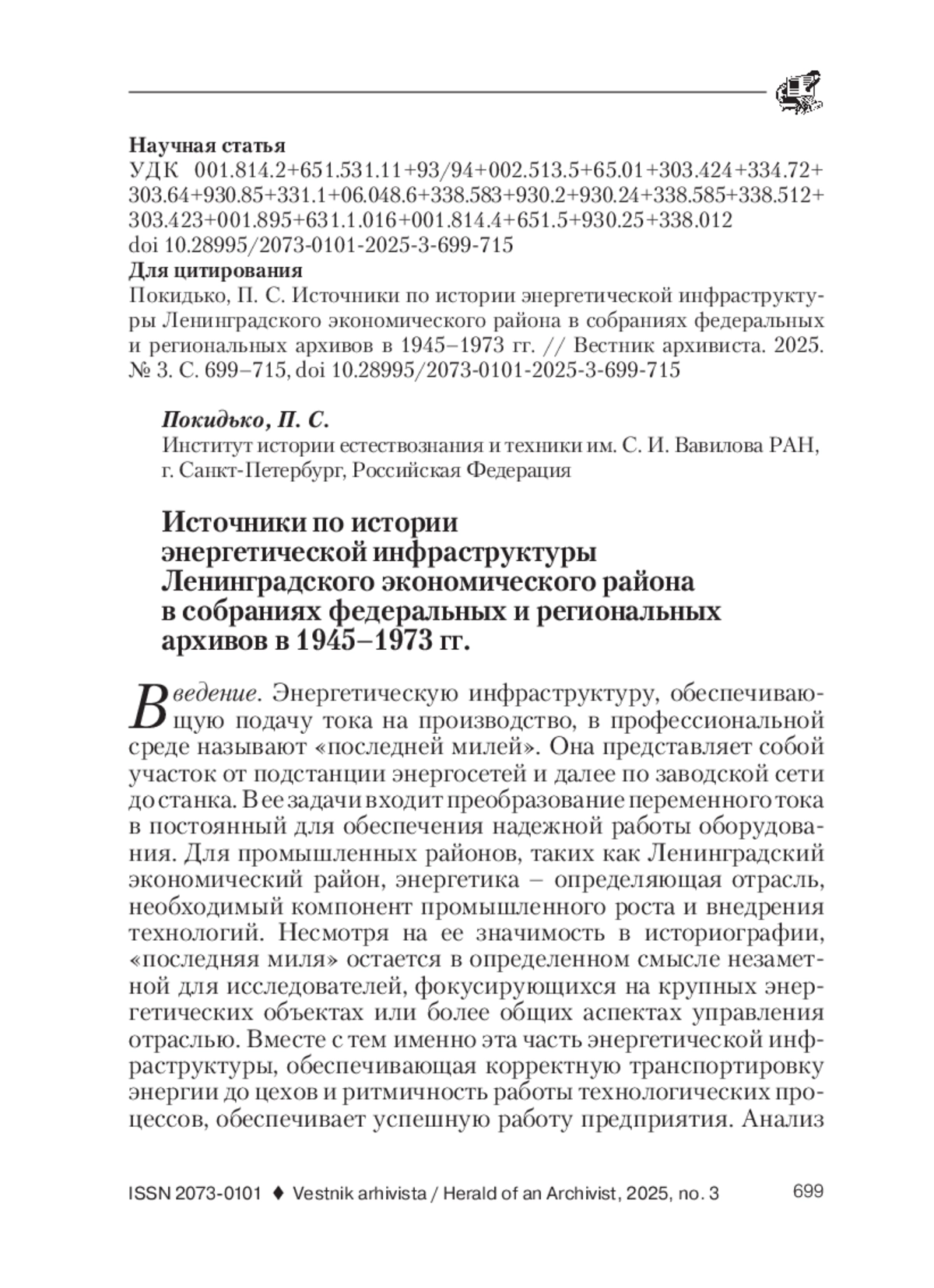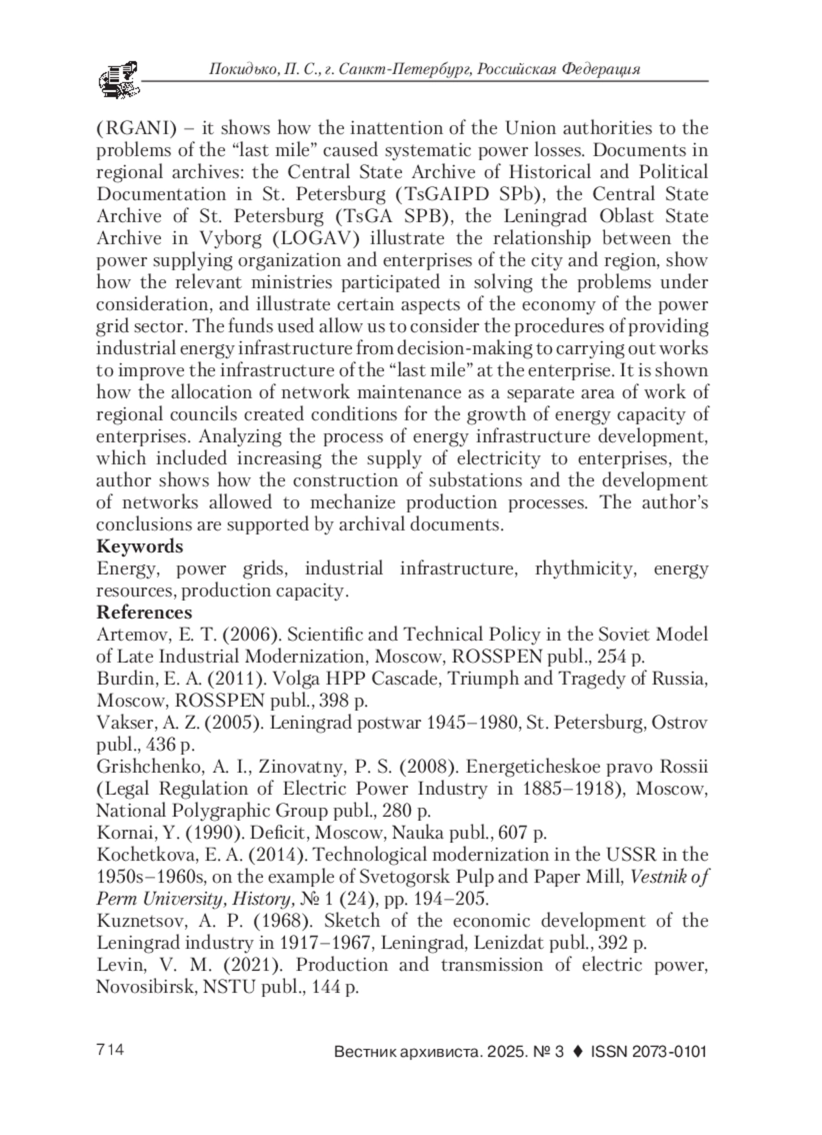 9. Лушин, А. И., Авданин, В. В. О некоторых особенностях директивного метода управления ленинградской энергетической системой в первое послевоенное десятилетие // Управленческое консультирование. 2020. № 11. С. 174-183. EDN: AWDKDA