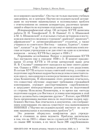 Введение. Коммунистический университет трудящихся Востока (КУТВ) был образован на базе Восточных курсов при Наркомнаце РСФСР в Москве для подготовки политических работников республик и автономий советского Востока в 1921 г. Сначала КУТВ находился в подчинении Наркомнаца, позднее перешел в ведение ЦИК СССР1. В 1923 г. КУТВ было присвоено имя И. В. Сталина
