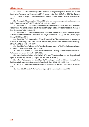 39. Nixon J.F. Thermal simulation of subsea saline permafrost // Canad. J. Earth Sci. 1986. V. 23. P. 2039-2046.
