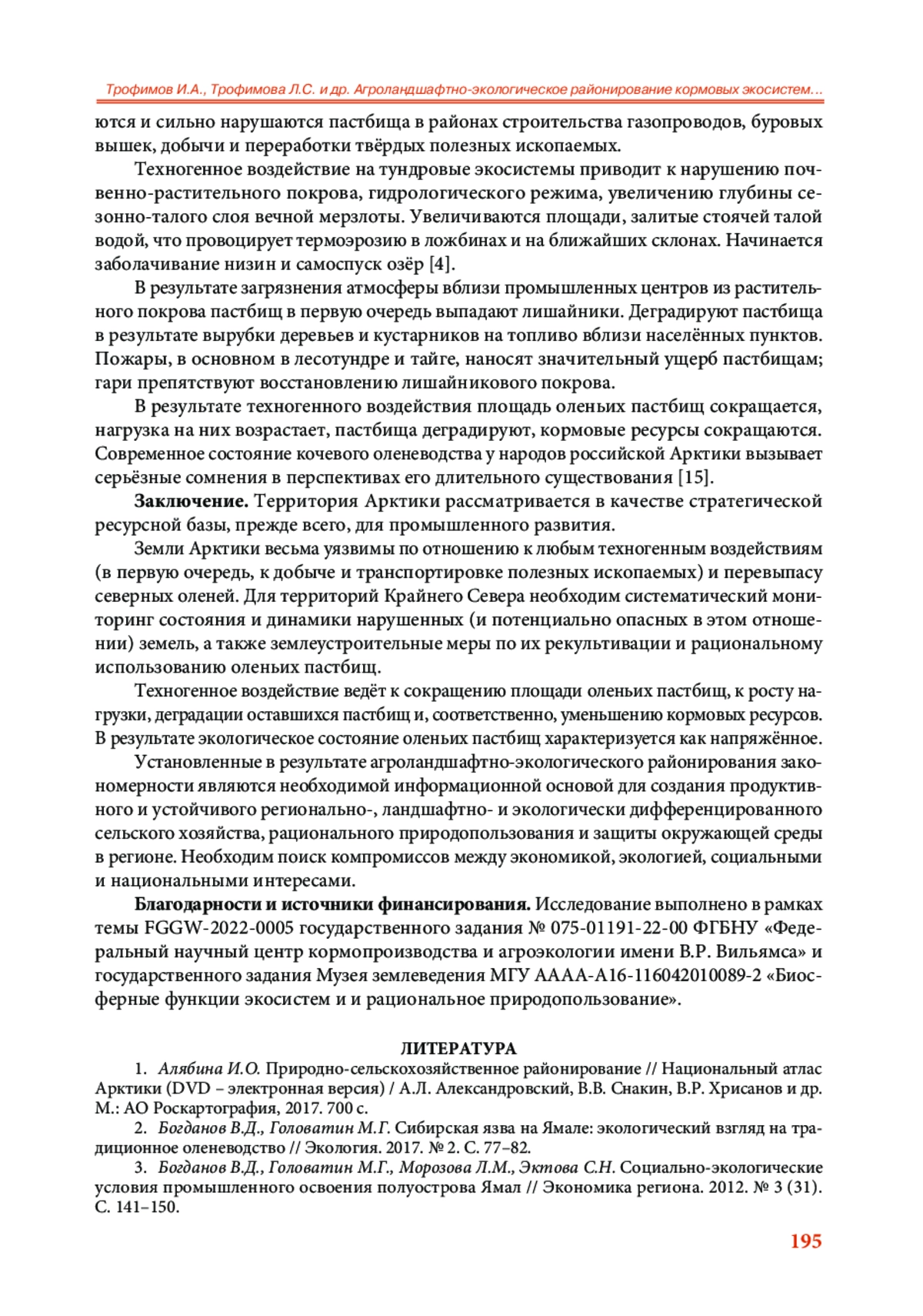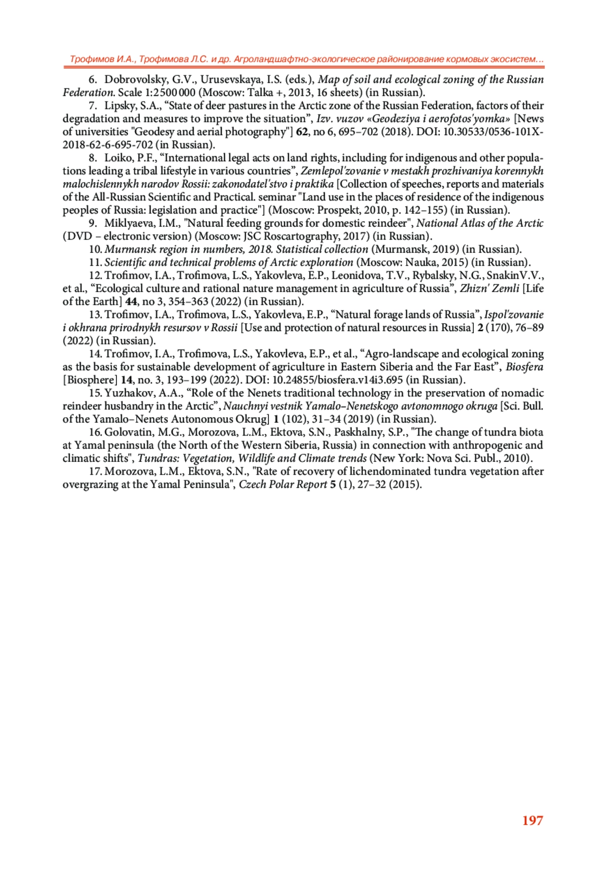 13. Трофимов И.А., Трофимова Л.С., Яковлева Е.П. Природные кормовые угодья России // Использование и охрана природных ресурсов в России. 2022. № 2 (170). С. 76-89. EDN: JDTLIZ