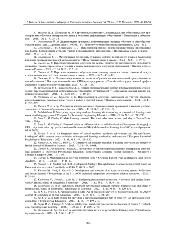 37. Xia Y., Shin S. Y., Shin K. S. Designing personalized learning paths for foreign language acquisition using big data: Theoretical and empirical analysis // Applied Sciences. - 2024. - Т. 14, № 20. - P. 9506.