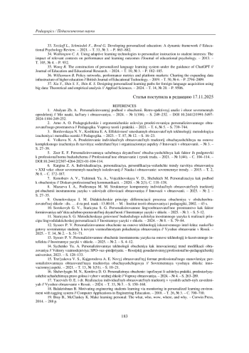 1. Абалян Ж. А. Персонализированный подход в обучении. Ретроспективный анализ и обзор современных определений // Мир науки, культуры и образования. - 2024. - № 1(104). - С. 249-252. DOI: 10.24412/1991-5497-2024-1104-249-252