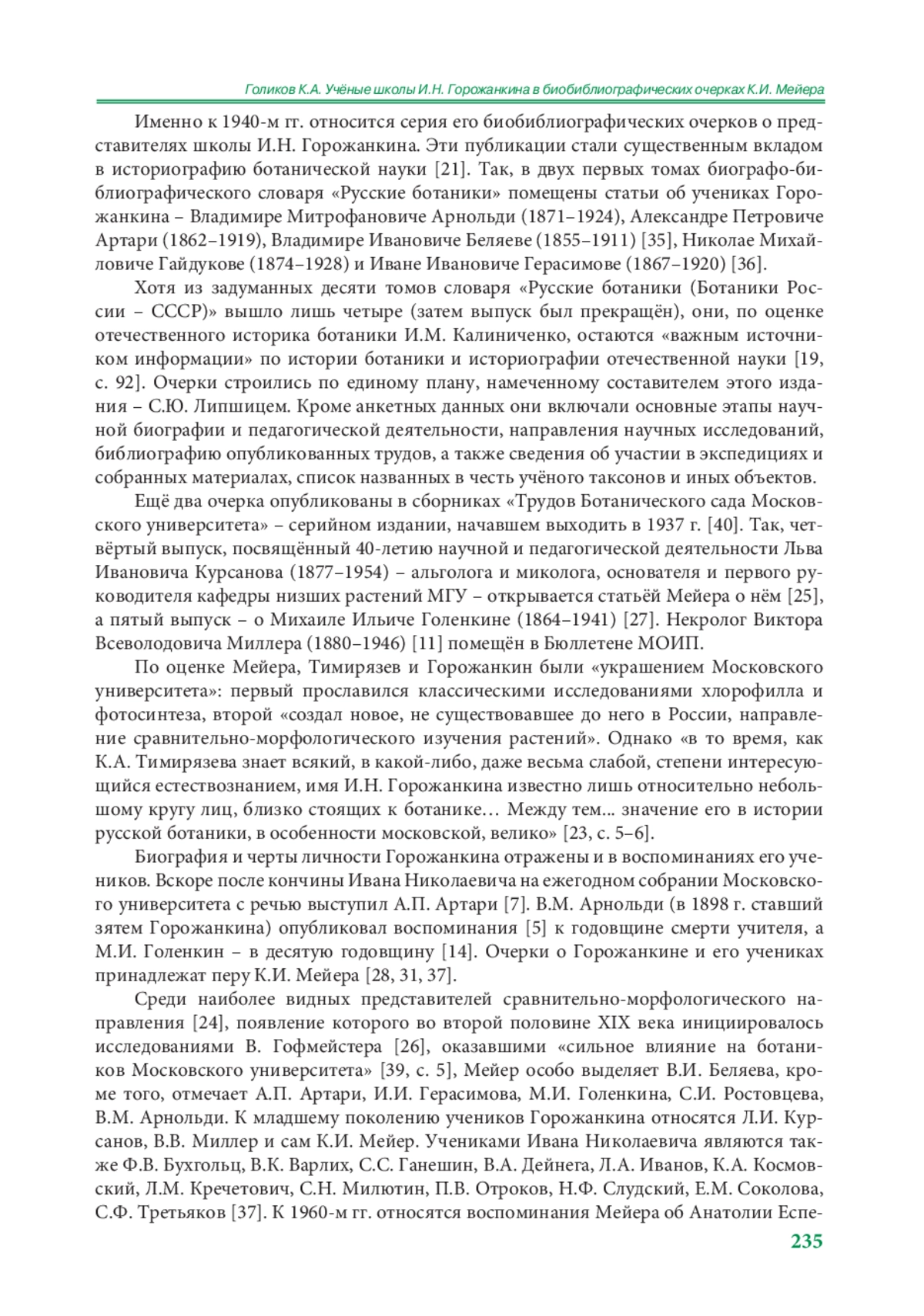 23. Мейер К.И. Ботаник Иван Николаевич Горожанкин (1848-1904) и его школа. М.: МОИП, 1940. 52 с.