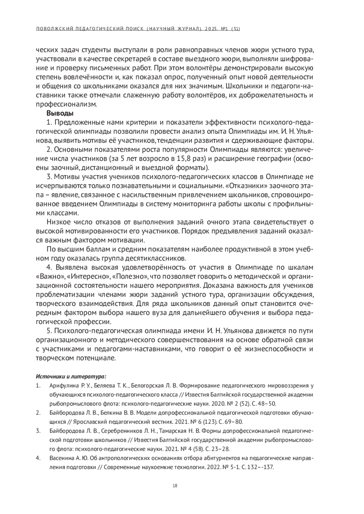 5. Гулов А. П. Олимпиады по педагогике для школьников: необходимость или утопия? // Вопросы журналистики, педагогики, языкознания. 2023. Т. 42. № 3. С. 449-458. EDN: IIELVA
