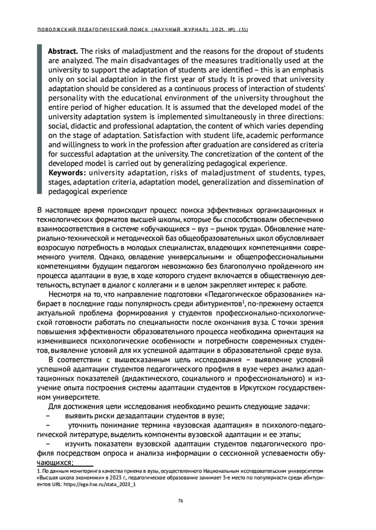 1. Албитова Е. П., Рогалева Г. И. Социальная адаптация студентов - условие формирования субъектной позиции, социального статуса “студент вуза” // Азимут научных исследований: педагогика и психология. 2015. № 4(13). С. 7-10. EDN: VHHGOJ